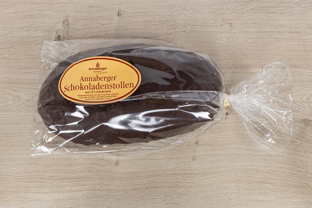 Mandelstollen mit Schokolade (20%) - Schokoladenüberzug und Schokobohnen